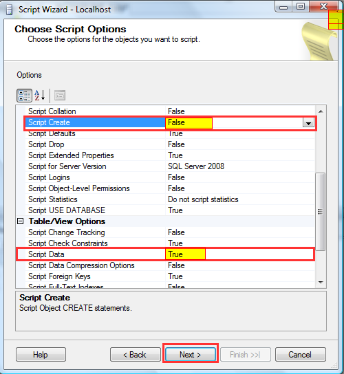 Varun,I just try to generate script by following your guide lines.But I can’t find ‘Script Data Option’ in Table/View options.I am using SQL Server 2005 DB.Could you pls help me to solve it.