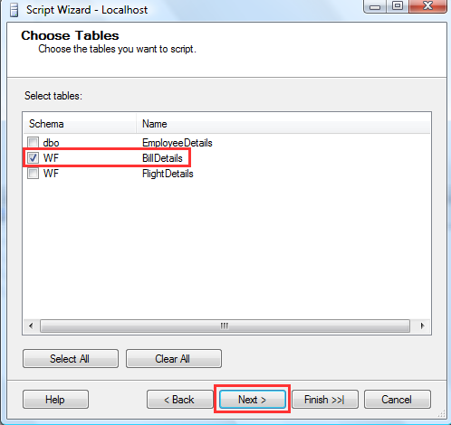 6 Select Particular tables/views; here Bill Details and click next.