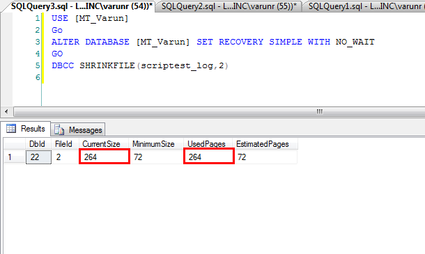Here is the result when we change the recovery model to  Simple – Correct method.